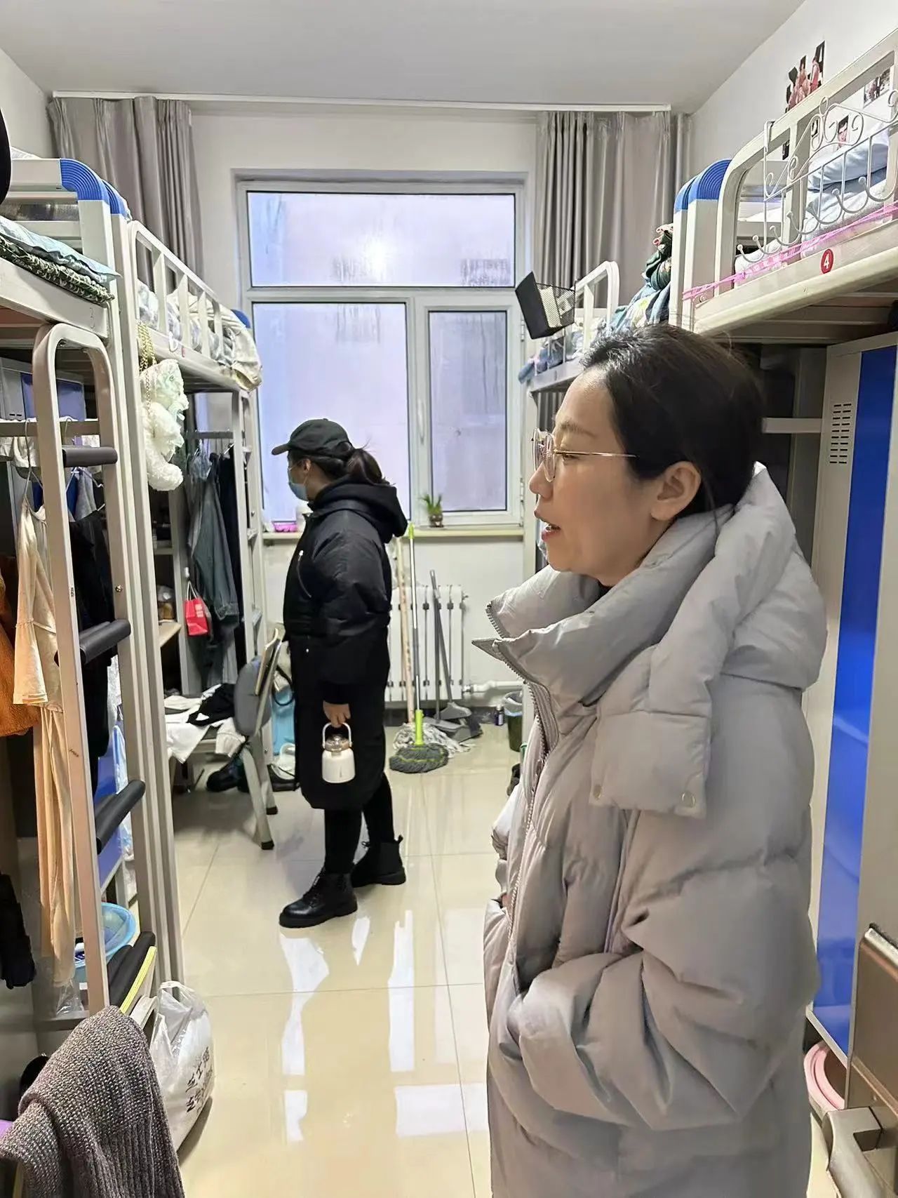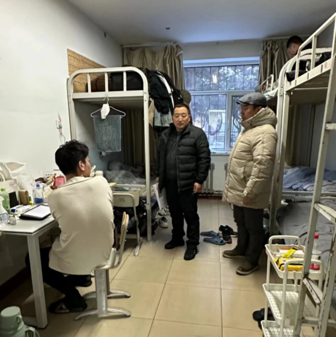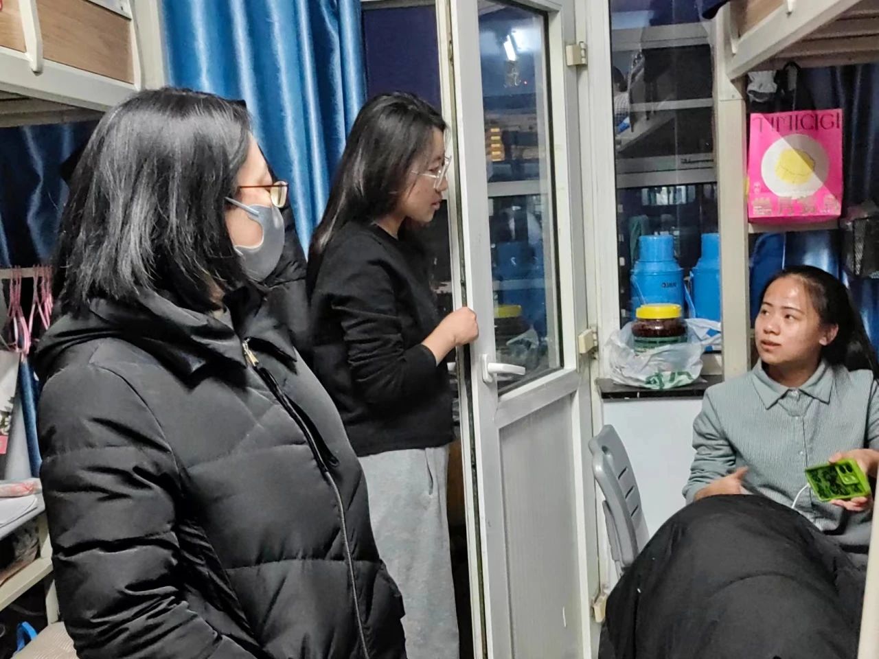 为强化员工宿舍管理工作,加强员工宿舍安全卫生教育和管理,形成常态化的运行机制,千亿国际网页版登录党委副书记副院长陆一琼、员工工作与就业办公室主任包双成及各班班主任于2023年12月15日走访员工寝室。