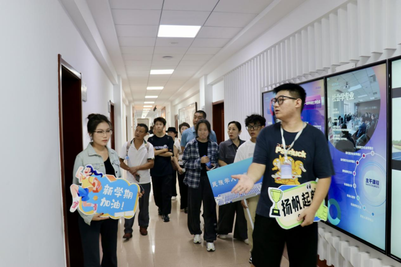 暖心餐后,在新生班主任、辅导员和员工干部的带领下,家长们和新生分成三组,先后参观了学校的校园环境、千亿国际网页版登录的办公场所和学习环境,使家长们对新生未来学习、生活的环境有了更直观的了解,对孩子们的未来充满了信心,同时也是新生更快地适应并融入校园生活。