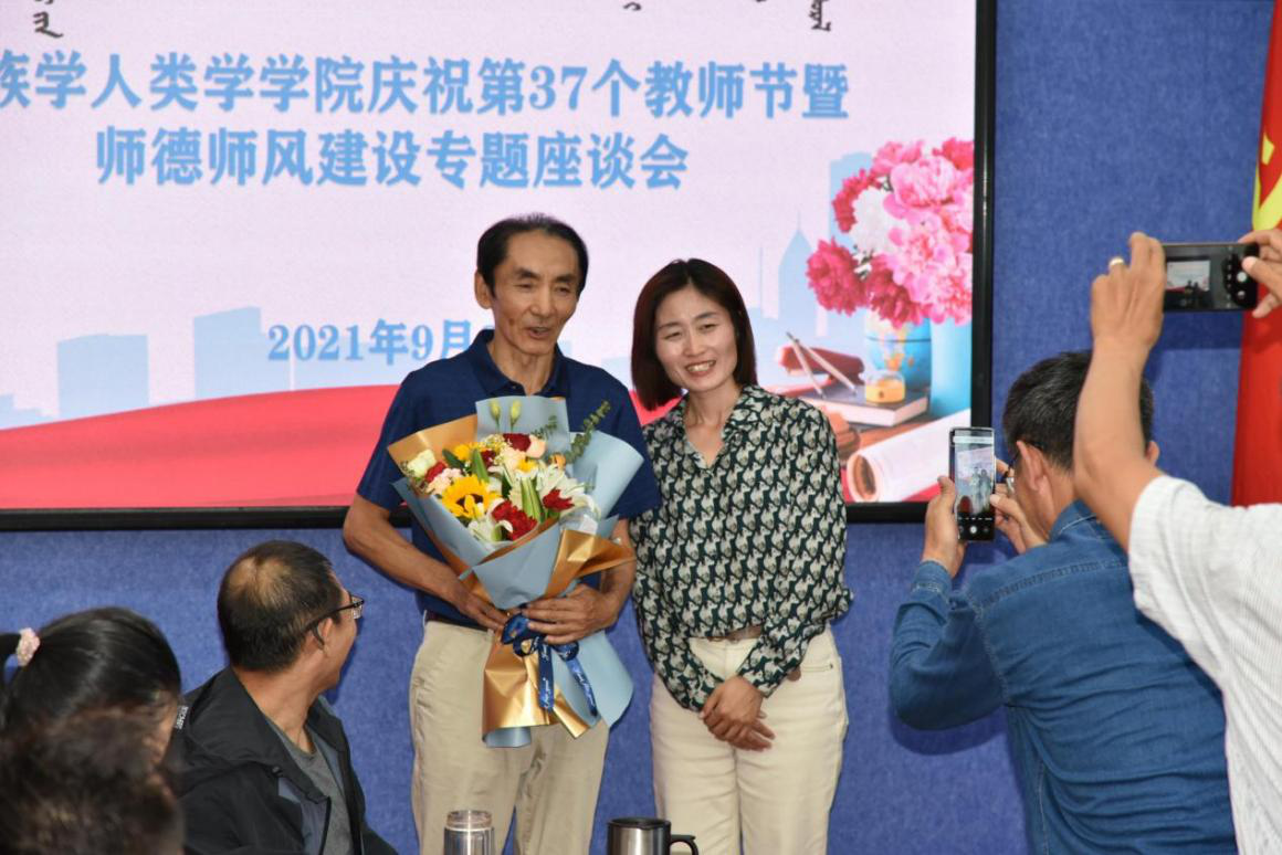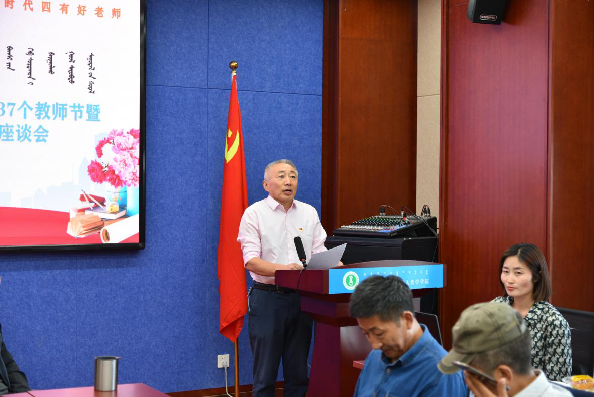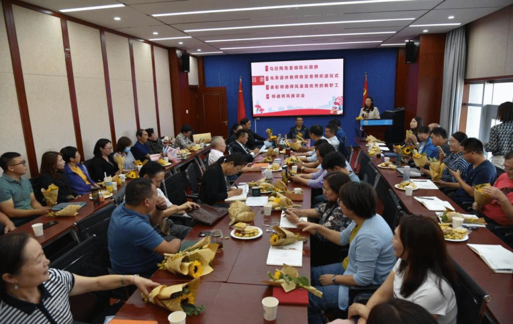 会上院长乌日陶克套胡致辞。乌院长首先向新加入的社会学、社会工作专业的18位老师的到来表示热烈的欢迎!紧接着对千亿国际网页版登录过去一年的人才引进、教学、科研等方面过的工作进行了回顾。之后对今年光荣退休的铁安老师、在教学、科研和班级管理等方面突出表现的谢咏梅、麦拉苏、陈引弟等几位老师在自己平凡的岗位上勤勤恳恳工作,为教育事业做出无私奉献的精神表示崇高的敬意。乌院长的讲话,充分肯定了教职工对千亿国际网页版登录发展的功绩,让教职工们感到温暖和荣耀。