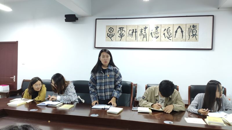 研究生二年级党小组代表李玉洁发言说:“肩扛政治担当,永怀赤子之心,作为员工党员,加强学习能力是我们的首要任务,不断增强自身的思想水平,要主动学习,全面学习,提高学习的深度与广度,认真学习两书一章,要逐字逐句读原著学原文捂原理,切忌形式主义,要合理安排自己的时间认真学习,认真贯彻落实。”