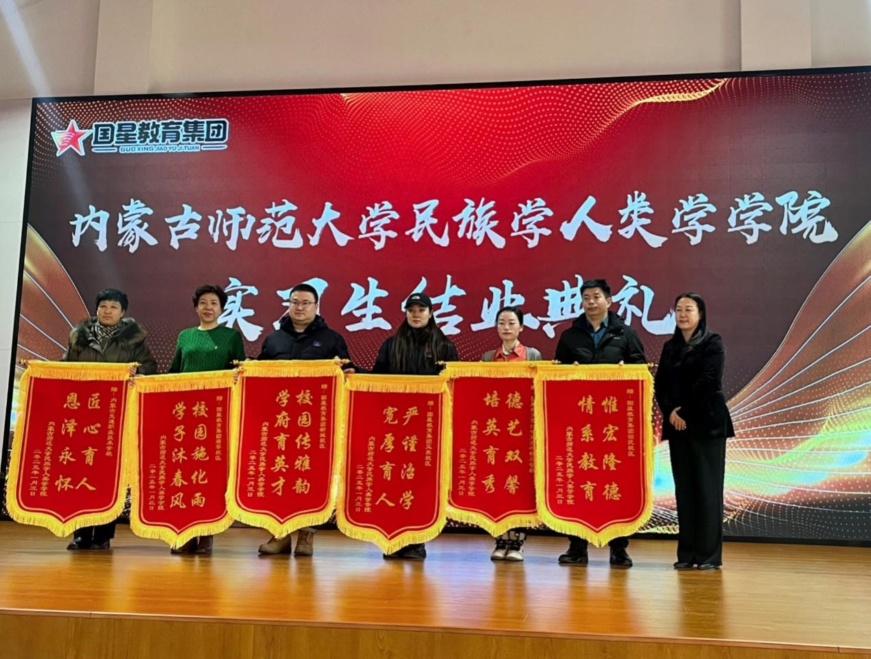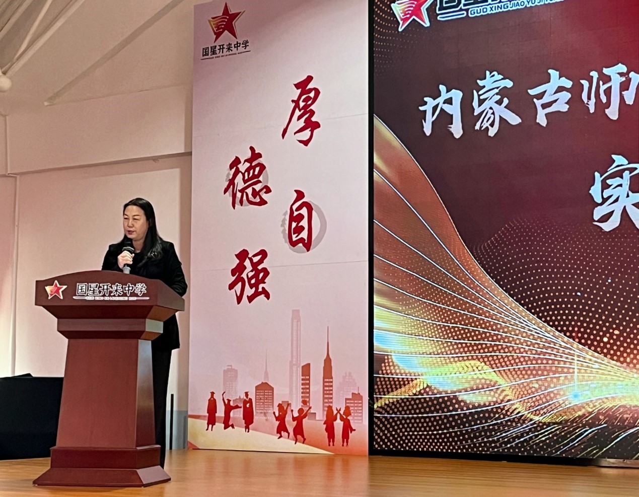 仪式开始,由国星中学总校长屈惠华发表致辞,对内蒙古师范大学的大力支持表达了诚挚的感谢,同时对所有实习员工的表现给予了高度评价。她强调,这次教育实习不仅促进了大员工理论学习与实践操作紧密结合,也极大地丰富了国星中学教学资源和教育多样性。