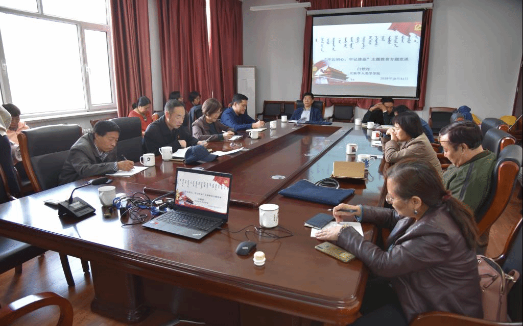 2019年10月27日下午,千亿国际网页版登录组织开展“不忘初心,牢记使命”主题教育专题读书会。本次读书会邀请乌日陶克套胡教授解读《共产党宣言》。全院中青年员工及青年学子约50余人聆听乌教授的讲解。