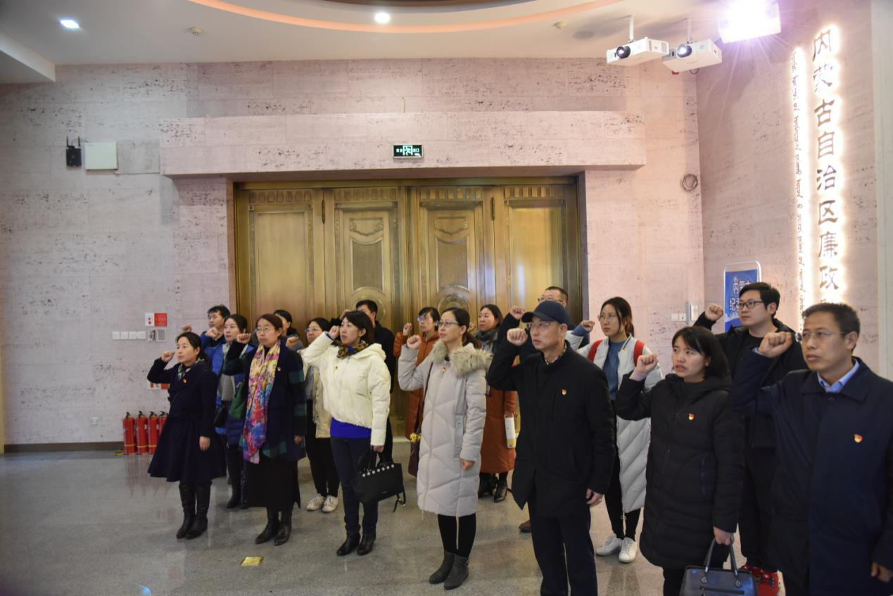 参观学习结束后,千亿国际网页版登录与经济管理千亿国际网页版登录、继续教育千亿国际网页版登录的老师们在内蒙古自治区廉政教育展厅内举行了重温宣入党誓词仪式。