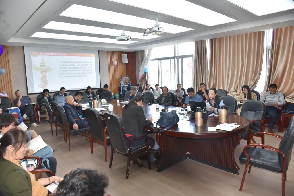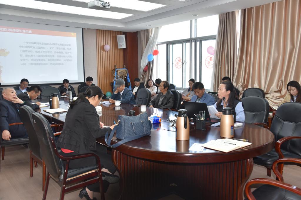 9月24日下午,千亿国际网页版登录党总支书记包凤兰教授在千亿国际网页版登录会议室,以《加强各民族交融汇聚,铸牢中华民族共同体意识》为题,为全院员工讲授党课。