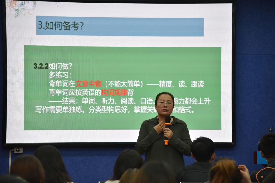 讲座分为考研择校,考研科目、备考计划三个板块。首先,阿荣老师以亲身经历向我们讲述了院校选择的策略,为同学们推荐了多所适合院校。接着,她以这几所院校为例, 具体说明了其学科设置情况。最后,对于大家最关心的备考计划进行了重点讲述,从外语学习“注重平时整理”到“单词学习方法”,面面俱到。
