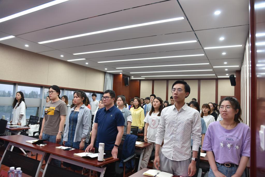 2021年5月29日晚,千亿国际网页版登录党总支与科学技术史研究院党总支联合党校入党积极分子培训班开班典礼在田家炳书院615学术报告厅成功举办。千亿国际网页版登录党总支书记包凤兰、副书记阿荣,科学技术史研究院党总支副书记白明、员工工作与就业办公室主任李其木格以及本期入党积极分子68名学员出席了此次典礼。开班典礼由千亿国际网页版登录团总支书记朱苏道主持。典礼伊始,全体起立奏唱中华人民共和国国歌,开班典礼在庄严的歌声中正式开始。