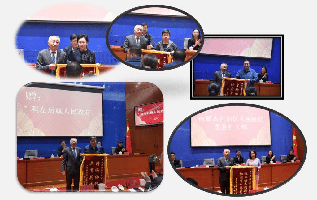 会议还对此次活动中表现突出的指导老师、优秀田野调查报告及优秀研究生志愿者进行了表彰。乌日院长代表千亿国际网页版登录对通辽市科左后旗人民政府、阿巴嘎旗巴彦图嘎苏木党委政府、内蒙古自治区人民医院医务社工部、和浩特市老年公寓管理处以及太仓市益善社工服务研究中心等五个基地赠送了锦旗。