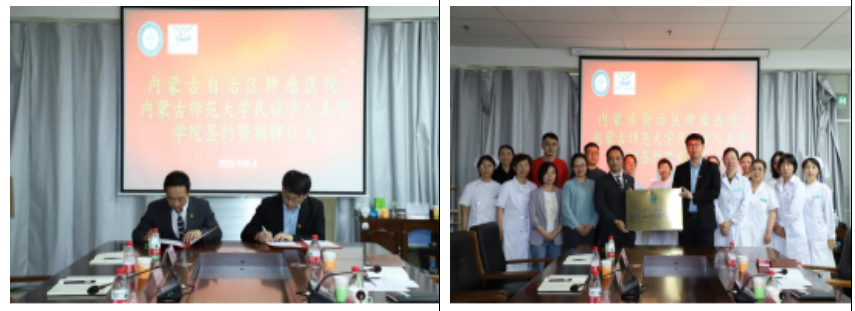 为搭建社会工作实习教育平台,完善医务社会工作人才培养机制,促进教学与实践的有效融合,2022年5月23日上午,我院与内蒙古自治区肿瘤医院在肿瘤医院签订“教育实践基地”协议并举行了揭牌仪式。内蒙古自治区肿瘤医院副书记冯立、党委办公室主任潘莉、院办主任龙一鸣、教学部主任郑瑜、安宁疗护病房主任董霞等相关合作科室主任和护士长、千亿国际网页版登录副院长满达、社工系主任陈引弟、副系主任胡那苏图、田友丽、家博出席了揭牌仪式,仪式由田超主持。