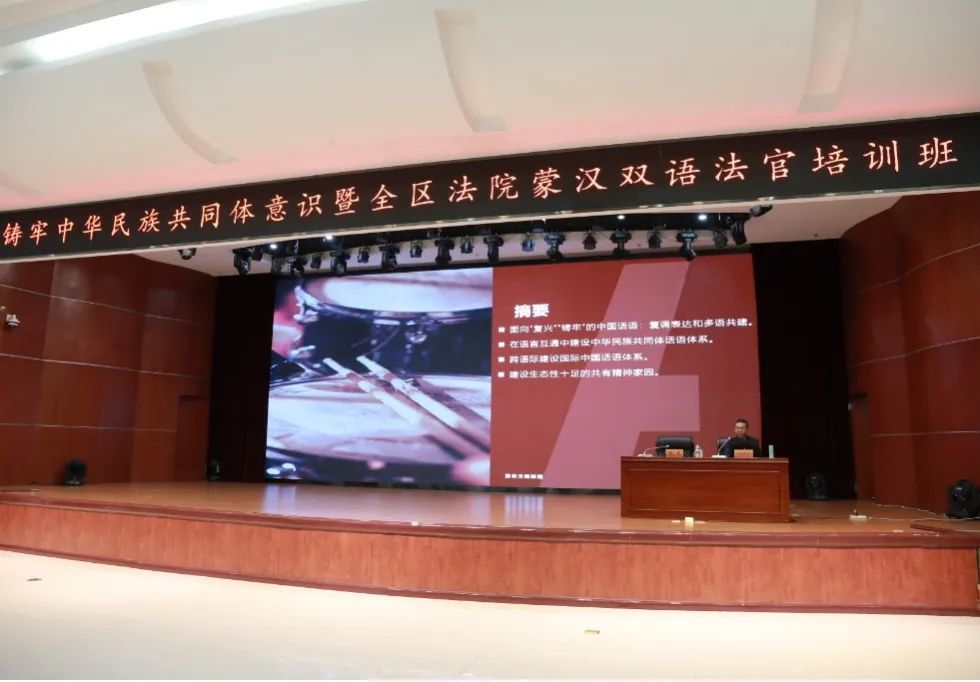 市中院党组书记、院长范巧兰致辞,她介绍了呼伦贝尔市、呼伦贝尔市两级法院及呼伦贝尔法院双语审判工作的概况。她强调,呼伦贝尔市作为少数民族聚集地区,具有底蕴深厚的民族团结进步工作基础。近年来,全市两级法院紧紧围绕“铸牢中华民族共同体意识”这一主线,坚持以各族群众对美好生活的向往为目标,切实履行职责使命,促进民族事务治理法治化水平不断提升。全市两级法院广大干警主动将铸牢中华民族共同体意识融入整个司法过程,不断探索创新工作方式方法,自觉将民族工作置于全面依法治国的大框架下,打造民族团结文化长廊,深入开展“民族团结一家亲”活动,将民族团结进步创建与市域治理、乡村振兴相结合,大力宣讲党和国家关于民族团结、乡村振兴帮扶政策,助推牧区现代化,帮助群众解决了大量实际困难。最后,她对参训学员提出希望,希望大家珍惜法官千亿国际网页版登录为大家提供的宝贵培训机会,增加学习主动性和自觉性,将培训中学到的内容,应用到工作实际当中,练就过硬本领,以民族的语言传递法治的声音,用法治的力量捍卫民族的团结。