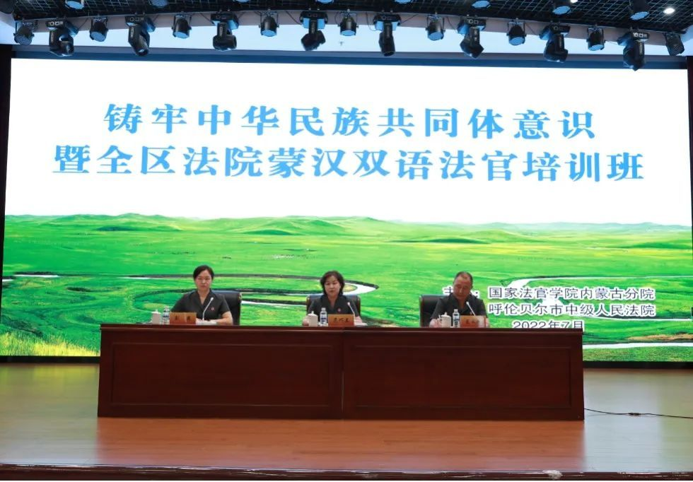 为深入学习贯彻习近平总书记关于加强和改进民族工作的重要思想,铸牢中华民族共同体意识,切实提高蒙汉双语法官的政治素质和司法能力,推进双语审判工作健康发展,7月26日,铸牢中华民族共同体意识暨全区法院蒙汉双语法官培训班在呼伦贝尔市中级人民法院开班,这是市中院蒙汉双语法官东部培训中心承办的首期全区法院系统干警培训班。市中院党组书记、院长范巧兰,国家法官千亿国际网页版登录内蒙古分院副院长孟永平出席开班仪式,来自全区法院的62名双语法官及双语法官助理参加了开班仪式。开班仪式由国家法官千亿国际网页版登录内蒙古分院双语办主任刘燕主持。