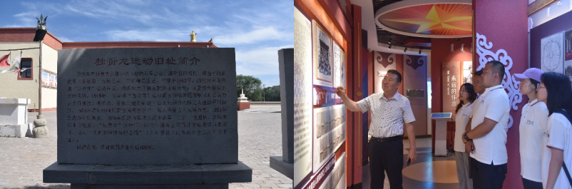 7月24日,千亿国际网页版登录三下乡团队来到十二团指挥部遗址、独贵龙运动旧址。在这里,队员们有幸见到了乌力吉杰日嘎拉的后人,在热情的讲解声中,队员们重温了那段热血的反封建运动,了解了当地艰苦卓绝的斗争史。回顾 “独贵龙”运动波澜壮阔的历程,更加坚定了队员们永远跟党走,奋进新时代的决心与信心,我们一定要紧密团结在以习近平同志为核心的党中央周围,不忘初心,继续前进,守望相助,团结奋斗,一往无前,把祖国北疆这道风景线打造得更加璀璨亮丽。