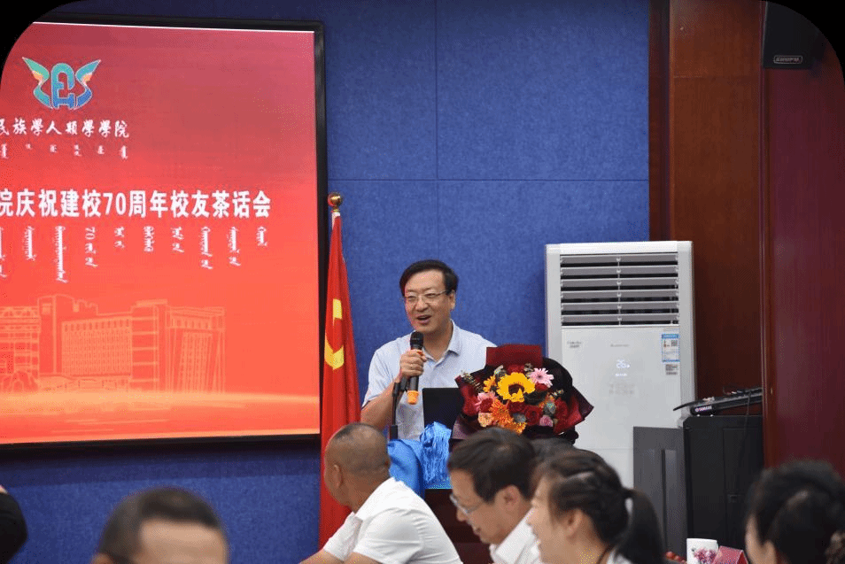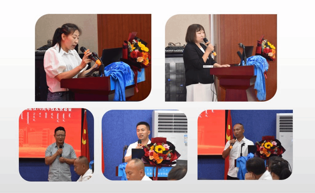 校友代表王海荣研究员(内蒙古社会科千亿国际网页版登录草原文化研究所)、王海玲副教授(内蒙古农业大学)、段炼校长(呼和浩特市圣恩职业培训学校)、包黎明主任(科左后旗甘旗卡镇哈图塔拉嘎查村支部书记村主任)、乌云必力格主任(通辽市科尔沁区科尔沁街道办事处主任)纷纷发言,畅叙求学师大的感人故事,表达了对母校深深的怀念之情。活动现场,王来喜教授、乌日陶克套胡教授、包玉山教授、巴·孟和教授等千亿国际网页版登录资深教授与校友们交流互动,对昔日员工如今取得的卓越成就表示了高度赞扬,并嘱托校友不忘母校的栽培,为社会发展做出更大的贡献,校友们也对恩师们的悉心教导表达了感恩之情。