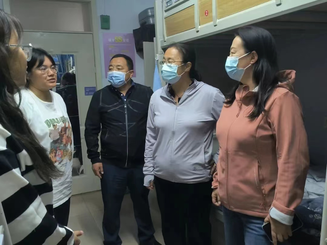 入驻赛罕、盛乐两个校区后,在学校疫情防控领导小组的统一指挥下,配合学校完成同学们每日的核酸检测、心理疏导、物资保障等各项工作。例如,走访员工宿舍,了解员工们的学习生活情况;发放口罩,防止同学们之间的交叉传染;并勉励同学们严格执行学校疫情防控要求,遵守学校规章制度,不受疫情影响确保正常的学习生活。
