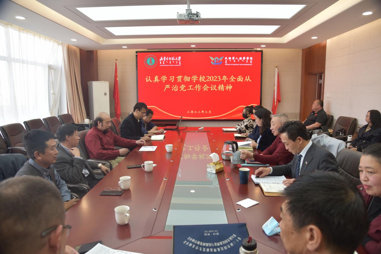 会议由党委副书记、院长乌日陶克套胡主持,由党委书记包凤兰依次传达2023年党的建设暨全面从严治党工作会议、中国共产党第二十届中央纪律检查委员会第二次全体会议、内蒙古自治区第十一届纪律检查委员会第三次全体会议以及全国全区教育系统、学校全面从严治党工作会议精神。