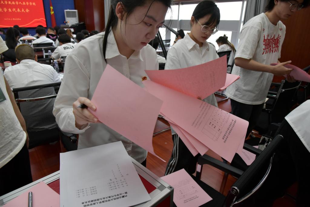大会进行第三项,在员工代表共同进行公平公正公开投票后,确认第四届员工委员会主席团本科生成员为包雅茹、王应应、杨聪慧,研究生成员为黄胜楠、旭斌、卓拉。(按拼音顺序)