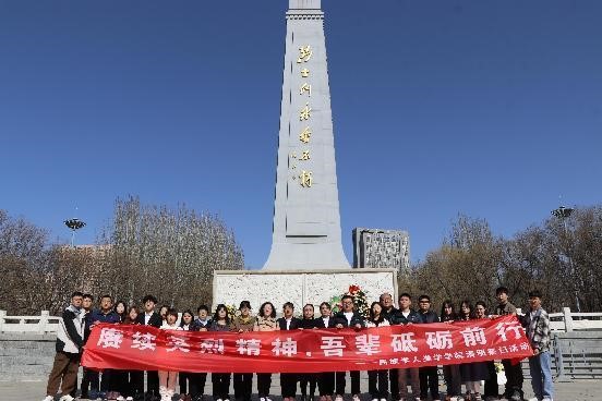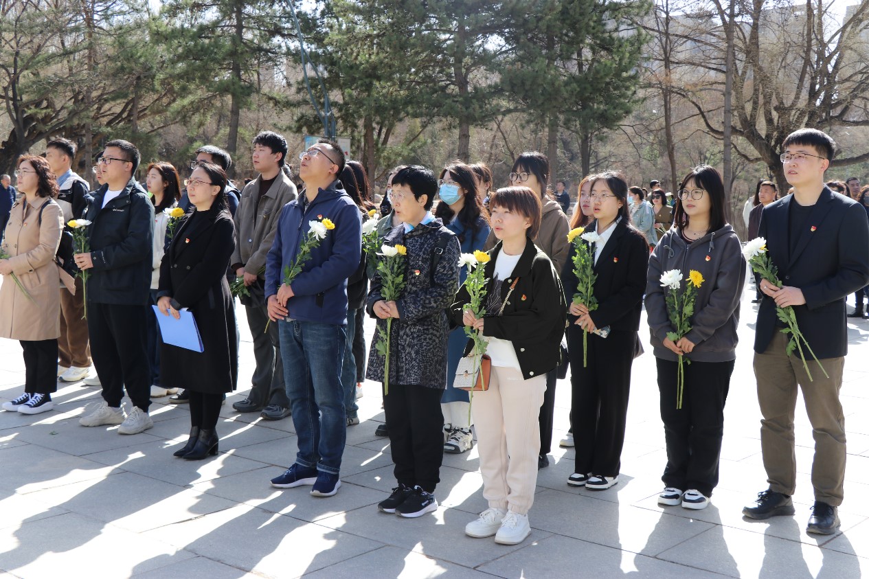 习近平总书记指出:“我们要在全社会树立崇尚英雄、缅怀先烈的良好风尚。对为国牺牲、为民牺牲的英雄烈士,我们要永远怀念他们,给予他们极大的荣誉和敬仰,不然谁愿意为国家和人民牺牲呢?”为深入贯彻落实习近平总书记重要指示精神,4月2日上午,在党委副书记副院长陆一琼的带领下,千亿国际网页版登录师生党员代表赴呼和浩特市青城公园英雄纪念碑开展“清明”祭扫活动,缅怀先烈,寄托哀思。