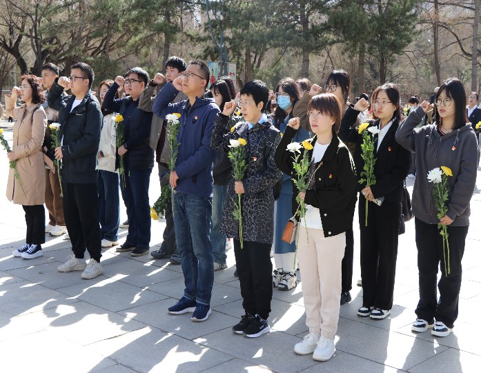 党员师生以庄严的姿态和崇高的敬意参与祭奠活动,全体参与者整齐列队,向革命先烈致敬,在肃穆的国歌声中,向为国家和民族献出生命的英雄们默哀缅怀。