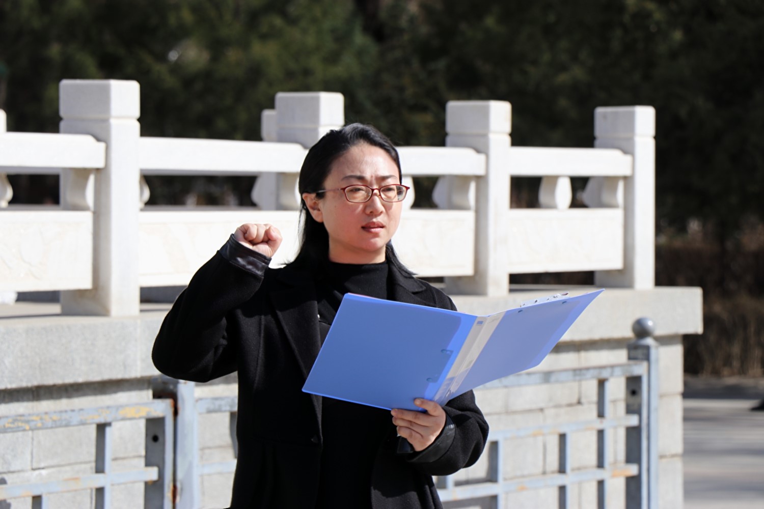 党委副书记副院长陆一琼在烈士纪念碑前发表讲话。她回顾了烈士们的英勇事迹,号召大家要铭记历史、缅怀英烈、珍惜和平,继承和发扬革命先烈坚韧不拔、英勇不屈的革命精神,在本职岗位上主动担当作为,为建设美好祖国贡献自己的力量。讲话结束后,陆一琼书记带领全体党员师生重温入党誓词。