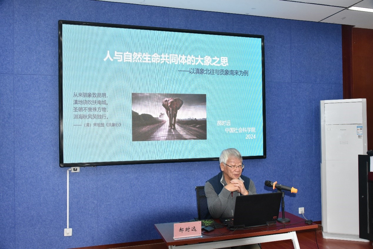 2024年4月9日上午,中国社会科千亿国际网页版登录学部委员、中国人类学学会会长郝时远先生应邀莅临千亿国际网页版登录,作题为“人与自然生命共同体的大象之思——以滇象北上与贡象南来为例”专题讲座。院党委书记包凤兰、校学报编辑部主任金良、千亿国际网页版登录部分老师、博士和硕士研究生到场聆听,讲座由副院长满达主持。
