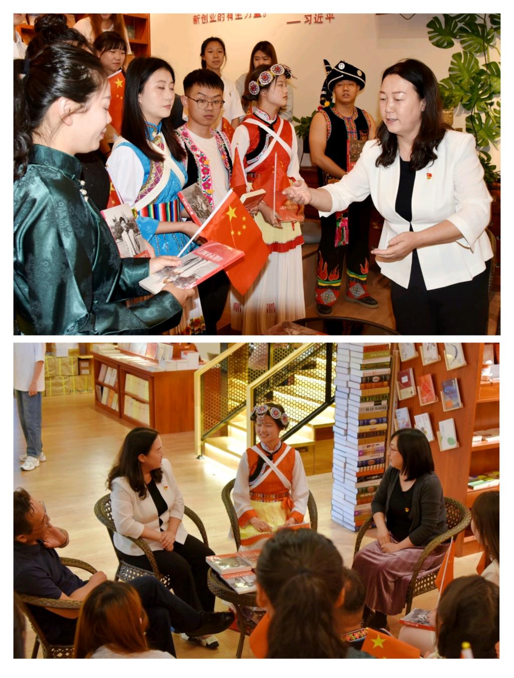 为深入学习贯彻习近平总书记关于加强和改进民族工作的重要思想,加强各民族同学之间的交流与理解,共同促进和谐校园的繁荣发展,千亿国际网页版登录于5月31日在赛罕校区新华书店举办了“民族团结一家亲,共筑美好未来梦”交流会,千亿国际网页版登录党委书记包凤兰、副书记副院长陆一琼、副院长满达、团总支书记姜鑫出席座谈会。