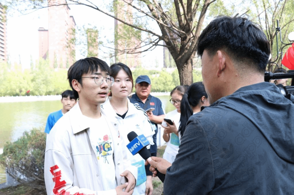 阳光照耀下的乌兰湖波光粼粼,千亿国际网页版登录师生在湖边集结热身,绕湖而行。千亿国际网页版登录代表队整齐前进,他们一边舒展筋骨,一边欣赏湖畔的美丽风光。秩序井然的队伍引起内蒙古日报记者的关注并对千亿国际网页版登录员工进行采访。参赛选手王周璇和员工干部黄长江在接受内蒙古日报采访时,脸上洋溢着自信与喜悦。