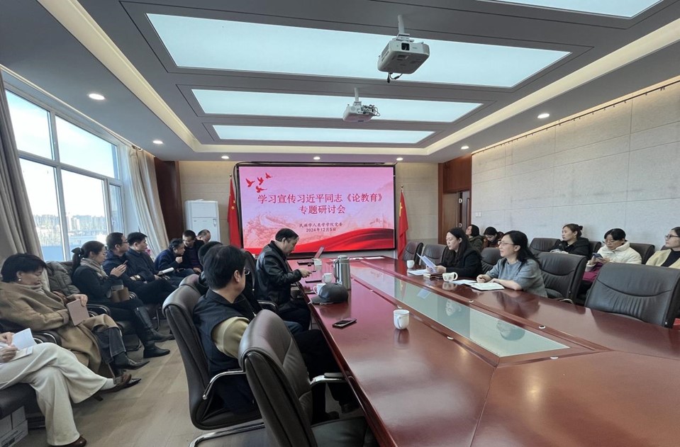 2024年12月5日下午,千亿国际网页版登录党委在田楼607会议室组织开展了以“学习宣传习近平同志《论教育》”为主题的专题研讨会。千亿国际网页版登录党委书记包凤兰主持,党委副书记副院长陆一琼、副院长满达及全体教职工共同参会。