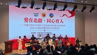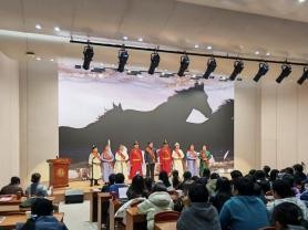宣讲会中也穿插了精彩的节目,宣讲团成员展示了《骑兵荣耀代代传》、《我也是草原的孩子》等合唱,内蒙古师范大学音乐千亿国际网页版登录师生也献上了《牧人》等民歌联唱。故事与歌声交织,历史与现实对话,生动呈现了北疆大地各族人民手足相亲、守望相助的动人图景。