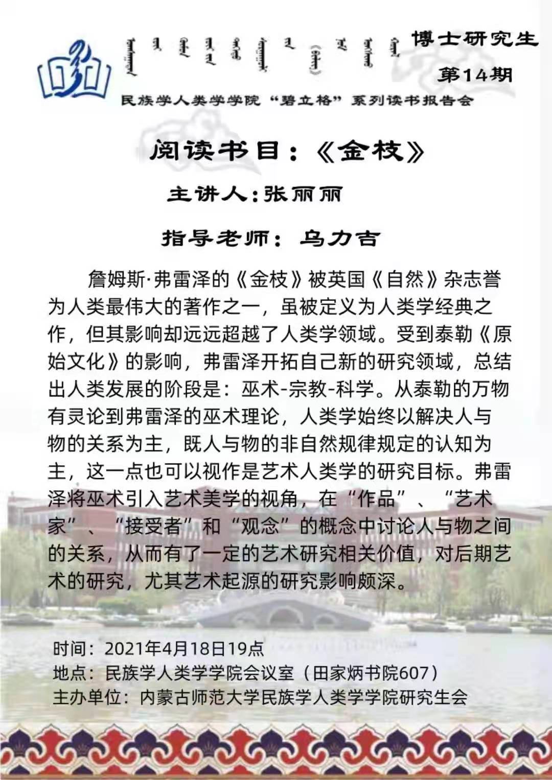 “碧立格”系列读书会博士研究生第14期预告