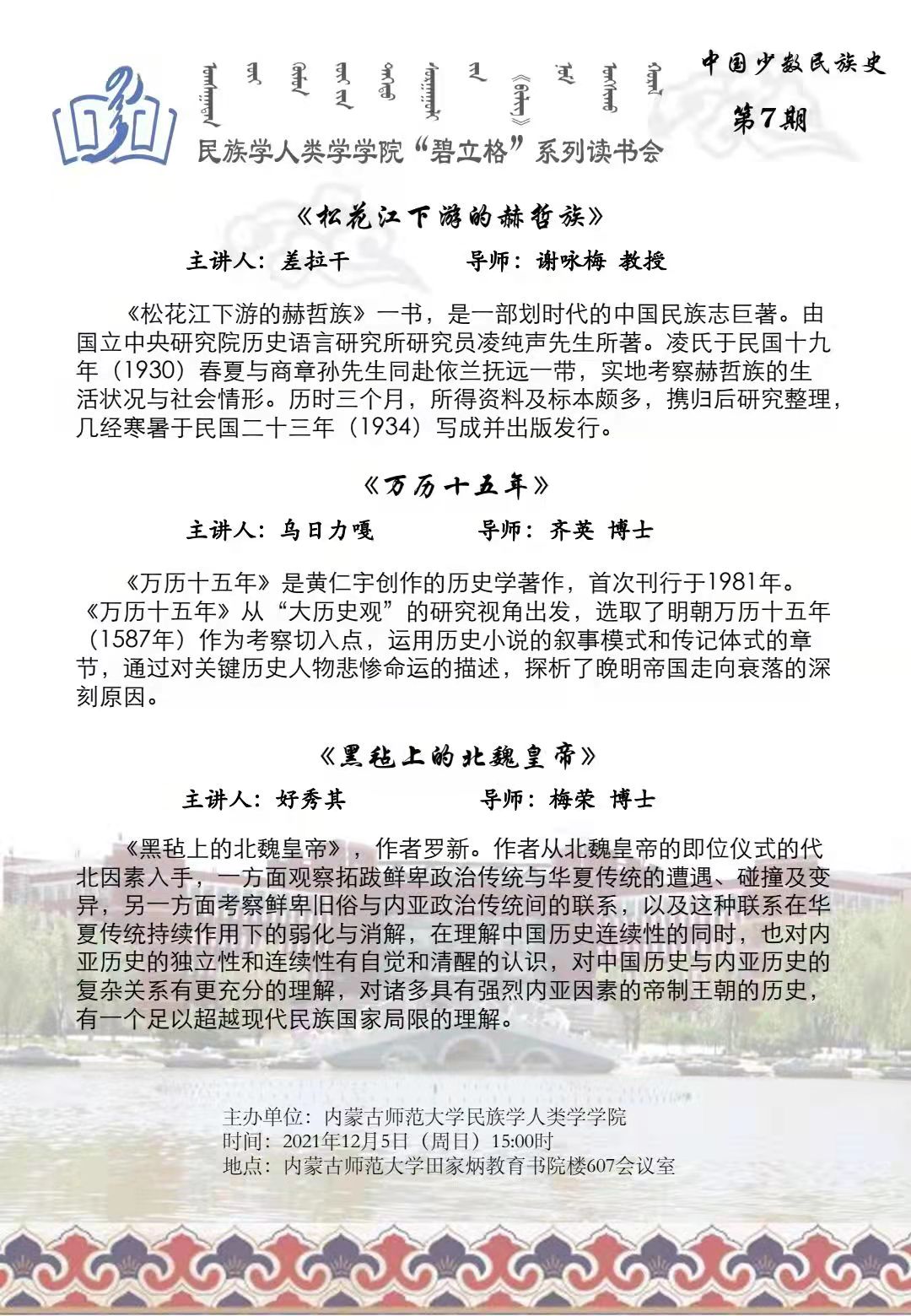 “碧立格”系列读书会中国少数民族史专业第7期预告