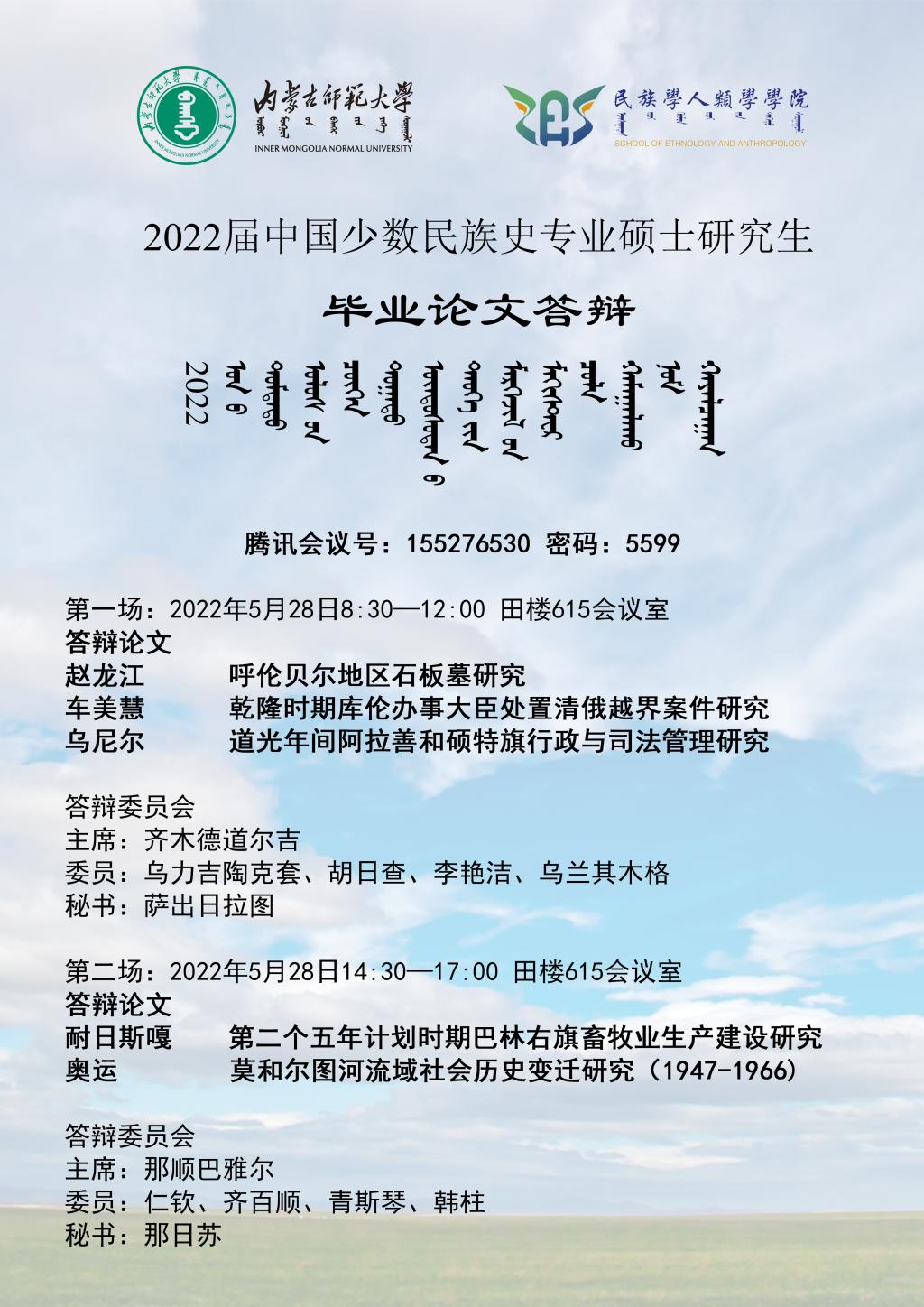 千亿国际网页版登录 中国少数民族史专业2022届硕士研究生学位论文答辩会