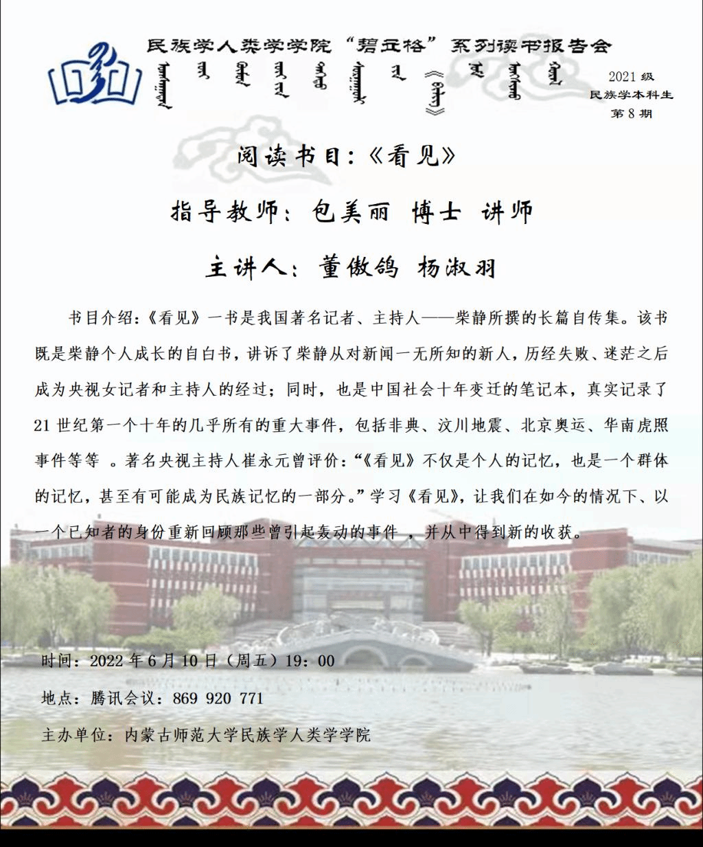 千亿国际网页版登录“碧立格”系列读书报告会预告 2021级学术型硕士研究生 第8期