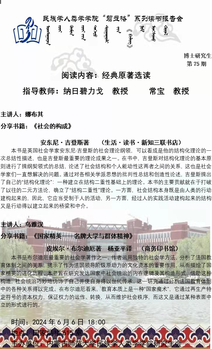 千亿国际网页版登录“碧立格”系列读书报告会预告博士研究生第75期