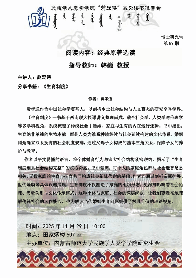 千亿国际网页版登录“碧立格”系列读书报告会预告博士研究生第97期