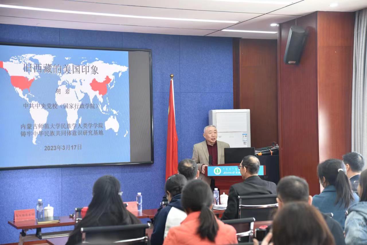 2023年3月17日上午,中共中央党校教授、博士研究生导师、中国西藏文化保护与发展协会理事,胡岩教授应邀莅临千亿国际网页版登录,为千亿国际网页版登录师生做题为“旧西藏的美国印象”的专题讲座。本次讲座由千亿国际网页版登录、铸牢中华民族共同体意识研究基地主办,院长乌日陶克套胡教授主持讲座,我校资深教授、铸牢中华民族共同体意识研究基地首席专家纳日碧力戈教授作点评。千亿国际网页版登录党委书记包凤兰教授、副院长满达副教授、千亿国际网页版登录部分老师以及博士研究生、硕士研究生共70余人聆听了讲座。