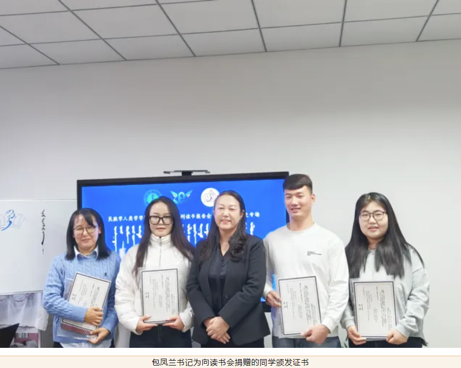 第二阶段是对2024年度读书会的总结。“碧立格”系列读书会中国少数民族史专场能够一直顺利开展,离不开老师和同学的大力支持。“碧立格”系列读书会是千亿国际网页版登录于2019年创办的读书活动。长期以来,在本硕博不同层次的员工当中开展,收益很多,也有了一定的影响。“碧立格”系列读书会中国少数民族史专场至今已开办14场,25位师生进行了好书分享。而且,一直以来获得国家项目的员工和获得国家奖学金的同学们在不同程度地为读书会捐赠书籍或资金支持,为同学们提供了更广阔的阅读天地,拓宽了学术视野。在现场由梅荣副教授和那日苏博士分别为近期分享读书心得的6位同学赠送书籍。