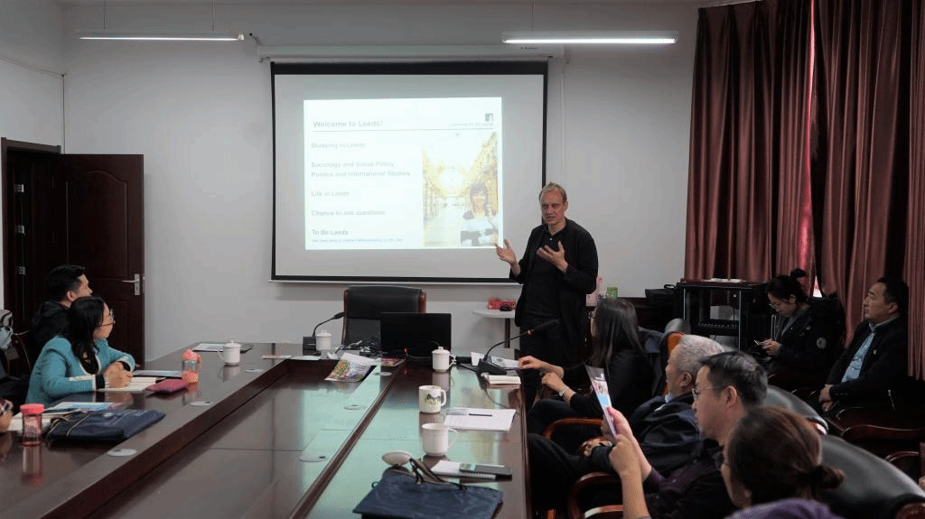 首先,诶登教授通过PPT、小视频介绍了利兹大学的环境、学术氛围、暑期学校、留员工概况和社会学学科的发展现状等信息,让千亿国际网页版登录师生充分了解了利兹大学,并产生了深深地向往之情。