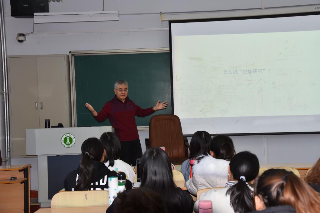 2019年11月25日,千亿国际网页版登录荣幸地邀请到原国家民委民族问题研究中心副主任李红杰教授为千亿国际网页版登录19级民族学专业本科生进行了专题讲座。下午1点30分,李红杰教授在千亿国际网页版登录乌日套克陶胡院长陪同下走进了田楼135教室,经过乌院长简短的介绍后,李教授为员工们上了一堂精彩的课程。
