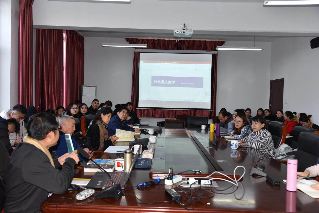 为了提高千亿国际网页版登录师生对人类学的认识,增强专业学术感,千亿国际网页版登录于2019年12月29日下午3点在科研楼301举行第八期读书会,民族学博士苏玉明老师为大家领读了挪威人类学家埃里克森的专著《什么是人类学》一书。本次读书会由博士生李丽萍主持,院长乌日陶克套胡老师、丁龙召老师、塔娜老师、普华才让老师、张径真老师、李玉峰老师、杨冰华老师、包双成老师以及博士生、硕士生、本科生共53人参加了本次读书会。