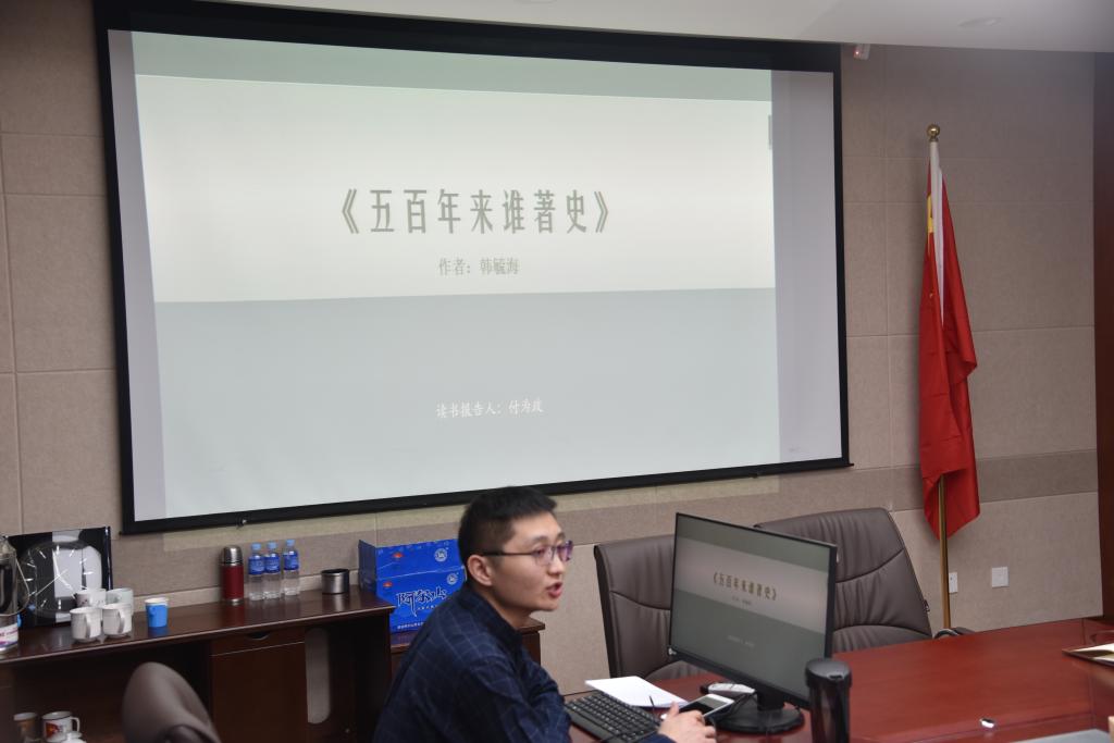 2021年3月28日19点,千亿国际网页版登录举行的第十二期“碧立格”系列读书报告会在田楼607会议室准时开始,本次读书报告会由千亿国际网页版登录付为政博士主讲,汇报的书目为韩毓海先生所著《五百年来谁著史——1500年以来的中国与世界》。本次读书会由千亿国际网页版登录党总支副书记阿荣主持。参与本场报告会有千亿国际网页版登录博士生导师王来喜教授,及我院博士硕士研究生30余人。