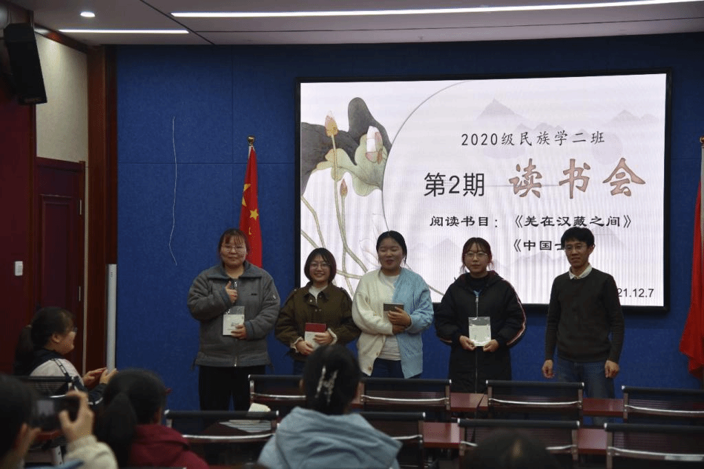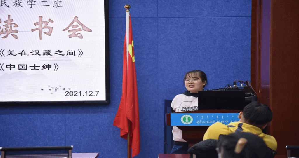 2021年12月7日19:00时,千亿国际网页版登录2020级民族学2班全体同学在田楼615会议室开展第2期“碧立格”读书报告会,班主任那日苏老师莅临现场,张楠同学主持读书会。主讲内容是,兰晶同学分享费孝通的《中国士绅》,刘燕燕同学分享王明珂的《羌在汉藏之间》。