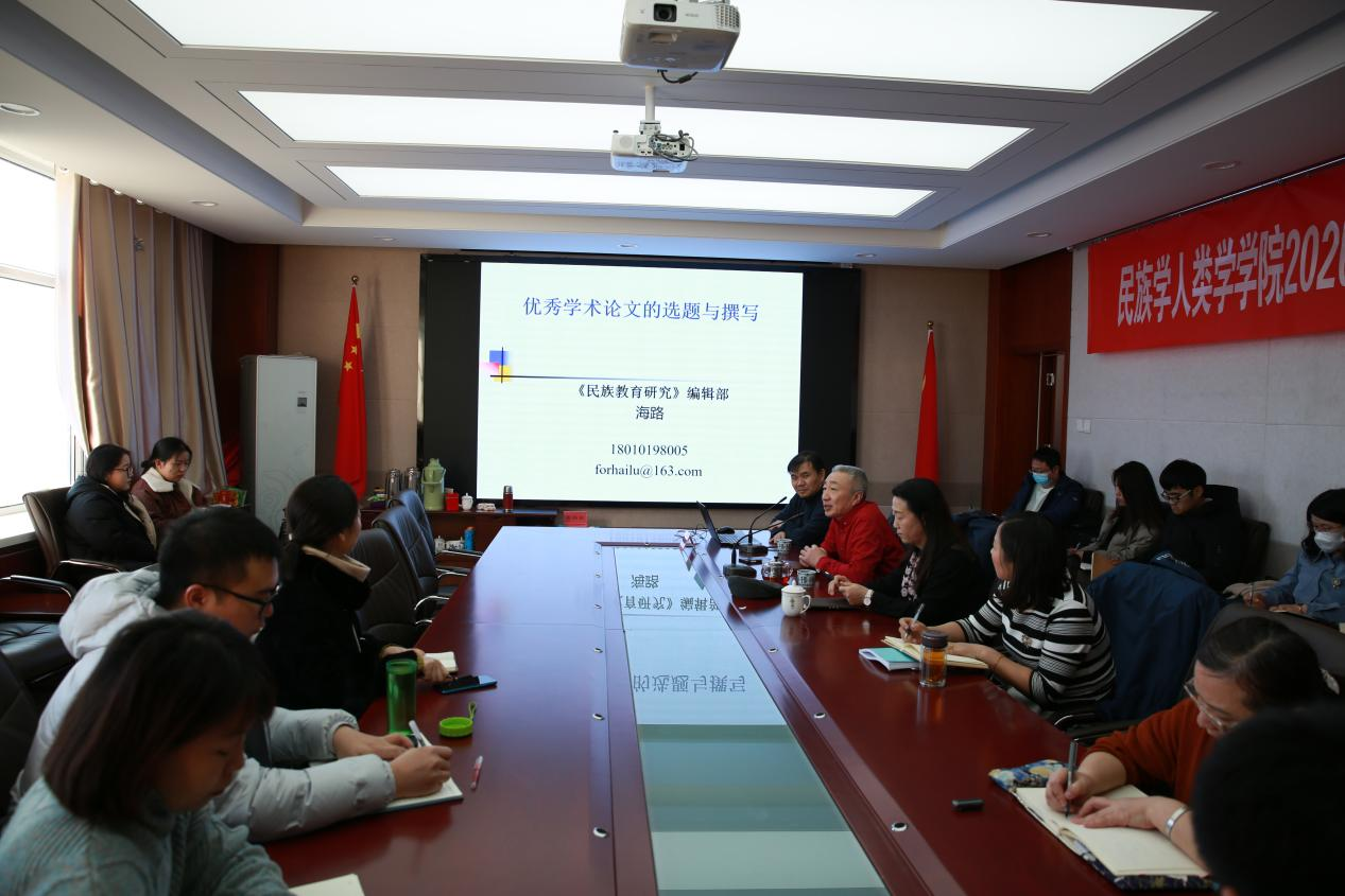 应千亿国际网页版登录邀请,2021年12月12日上午9:30,《民族教育研究》编辑部主任、博士生导师海路教授,在田楼607会议室为千亿国际网页版登录师生做题为《优秀学术论文的选题与撰写》的学术报告。此次报告由院长乌日陶克套胡教授主持,千亿国际网页版登录党委书记包凤兰教授及部分师生参加本次报告会。