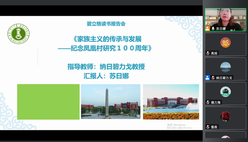 2022年4月24日下午3:00,千亿国际网页版登录2021级、2020级博士研究生通过“腾讯会议”举行了第35期读书报告会。本次读书报告会的汇报者是来自2021级民族学专业的苏日娜和高旭两位博士生。千亿国际网页版登录首席专家、博士生导师纳日碧力戈教授出席了本次读书报告会并进行指导,2021级博士生高旭主持报告会。